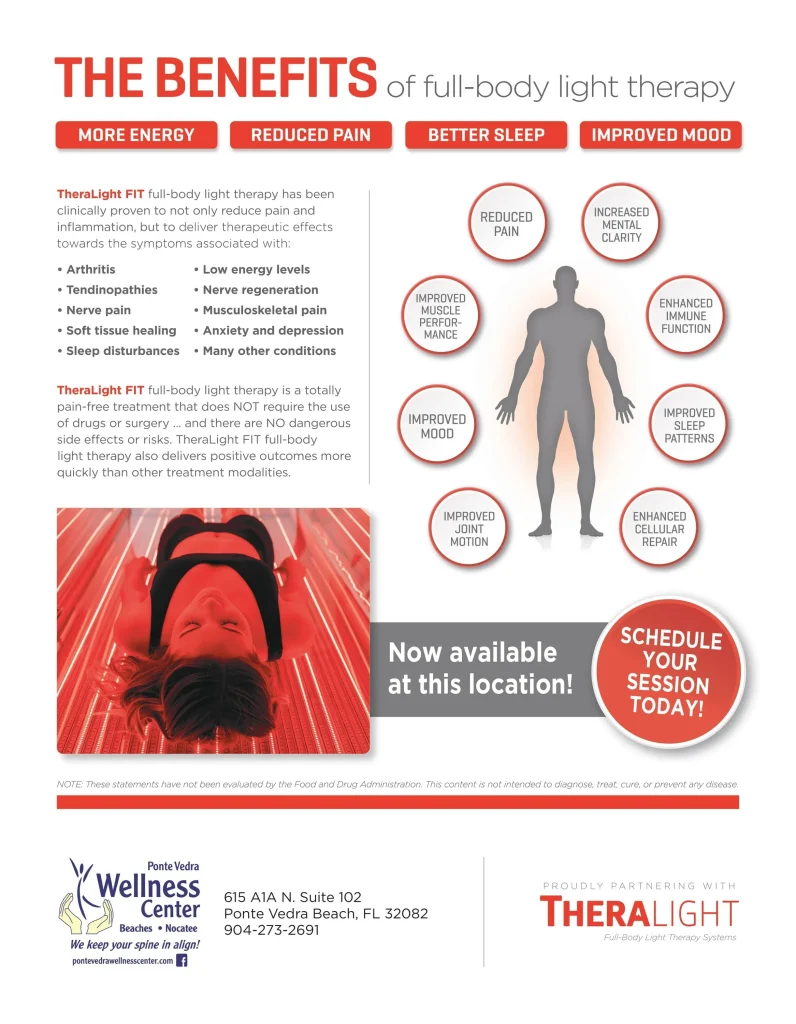 Rejuvenate your body and enhance your wellness with Red Light Therapy at Ponte Vedra Nutrition Center. This non-invasive treatment boosts collagen production, reduces inflammation, accelerates healing, and promotes skin tightening. Visit us in Ponte Vedra Beach, FL, to experience the transformative benefits of red light therapy.